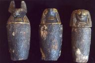La tumba también contenía tres vasos canopos de madera, en los que los antiguos egipcios