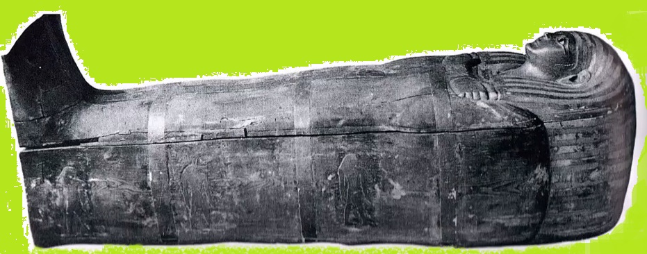 En cuyo interior se puede ver la momia con su máscara funeraria.