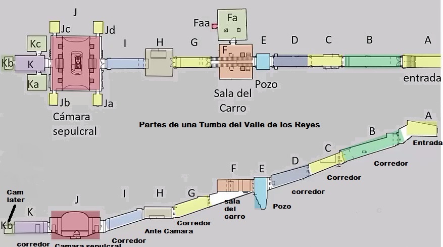tumba de Tutankhamón, es decir una escalera. Un corredor en rampa, y una antecámara,