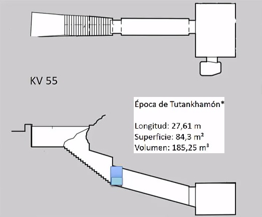 La tumba KV 55 fue descubierta por Ayrton, trabajando para Theodore Davis en